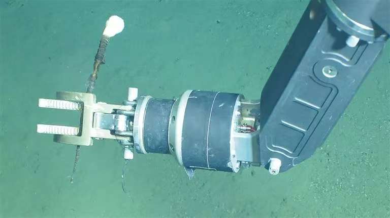 奋斗者号载人潜器的机械手抓取海葵