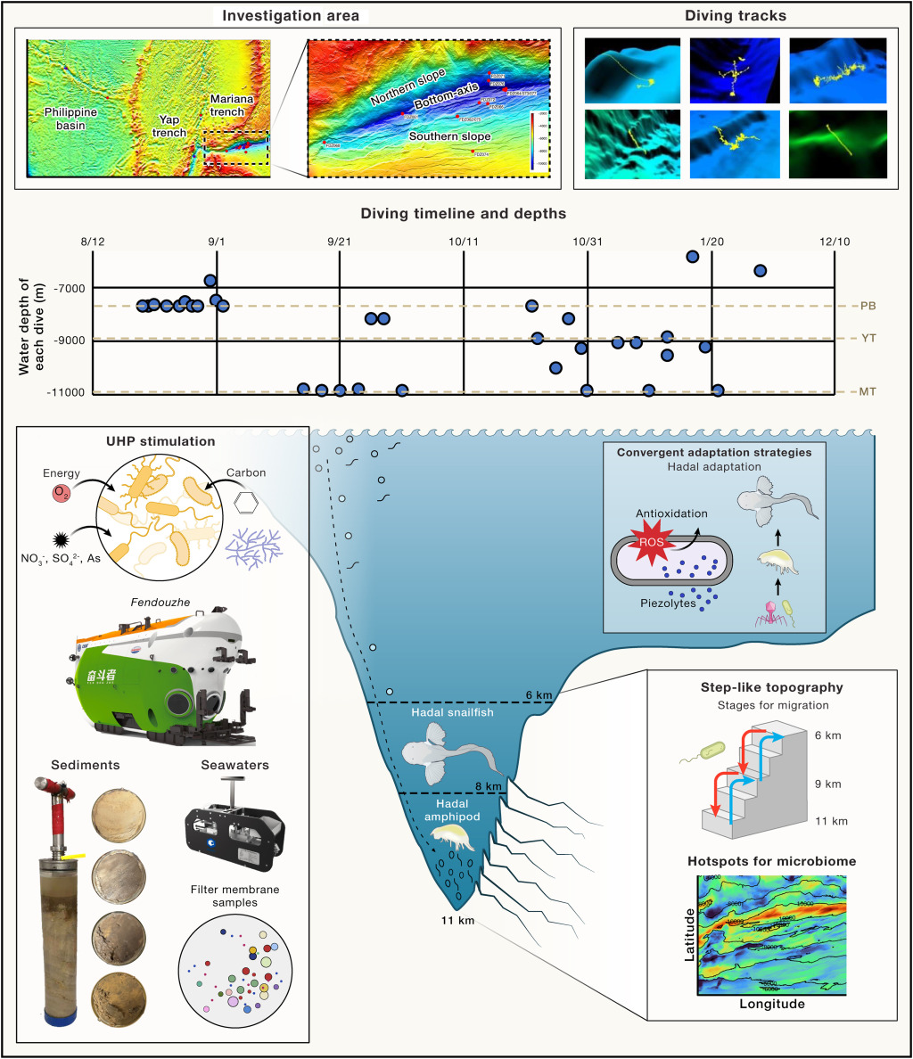 “溟渊计划”研究团队多次深入深渊海底,发现深渊微生物在最深海域超高静水压(600-1100个大气压)下的异常繁盛,发现深渊两种代表性宏生物与深渊微生物之间存在趋同的适应机制,即深渊存在跨越物种边界的“共适应”策略,从而串联起了独特的深渊生态系统,描绘了首个海洋最深生态系统的图景。