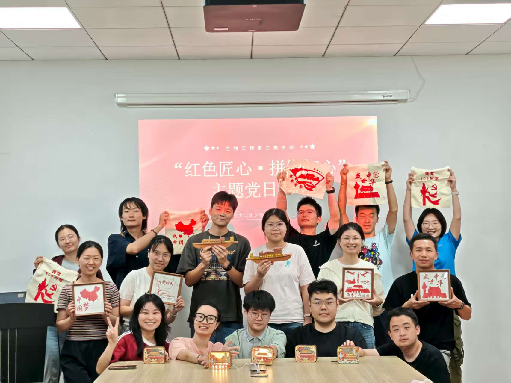 2025年7月8日,为庆祝交通大学第一个党团组织成立100周年及中国共产党成立104周年,生物工程系研究生第二党支部精心策划并开展了以“红色匠心·拼铸初心”为主题的党日活动。此次活动以“沉浸式手工+党史学习”的创新形式,将红色教育与青年党员的实践体验深度融合,引导党员重温历史、凝聚力量、厚植家国情怀,展现了高校党支部在新时代背景下守正创新的活力与担当。