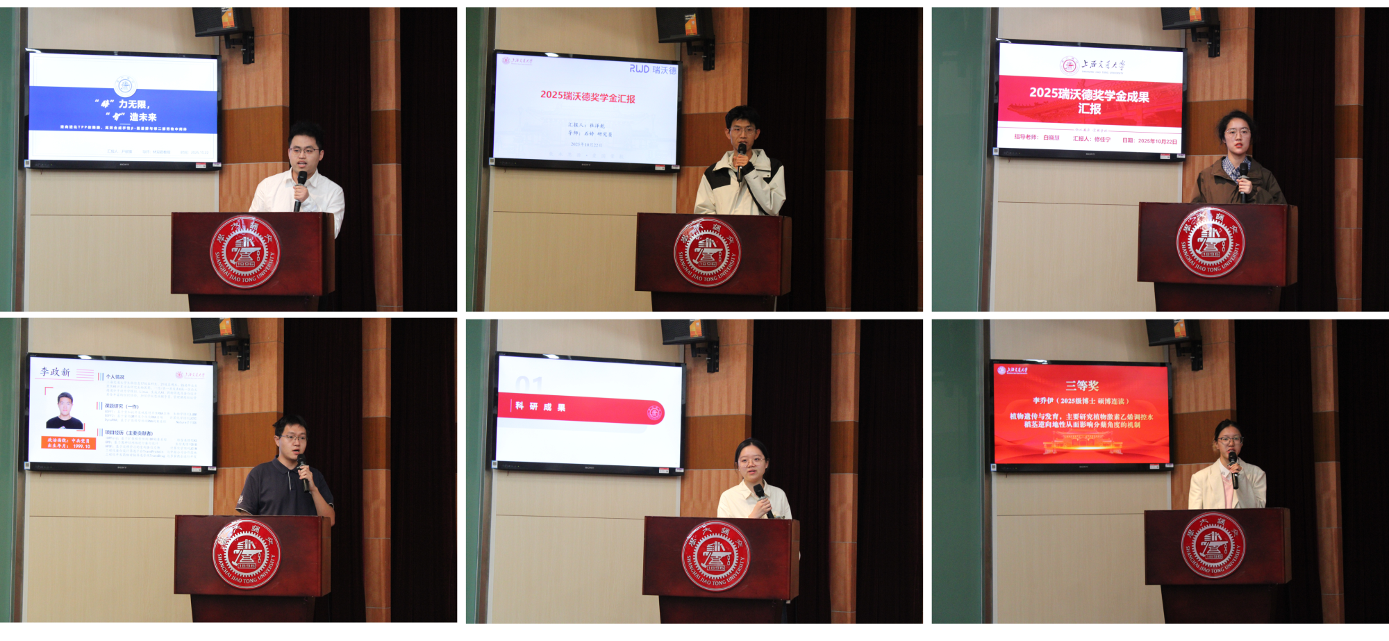 获奖学生尹献旗、杜泽乾、修佳宁、李政新、王雨柔、李乔伊依次展示了他们在神经生物学、合成生物学、肿瘤免疫等前沿领域的科研成果。