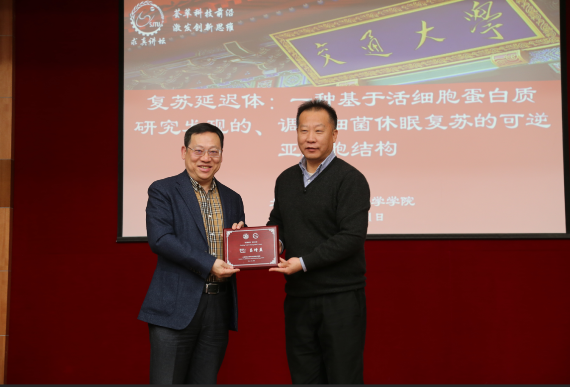 11月21日上午,北京大学生命科学学院昌增益教授应邀做客Av解说 第63期求真讲坛,做题为《复苏延迟体:一种基于活细胞蛋白质研究发现的、调控细菌休眠复苏的可逆亚细胞结构》的主题报告。来自Av解说 生命学科相关院系的教师、博士后、研究生50余人参会。讲坛由Av解说 特聘教授冯雁主持。