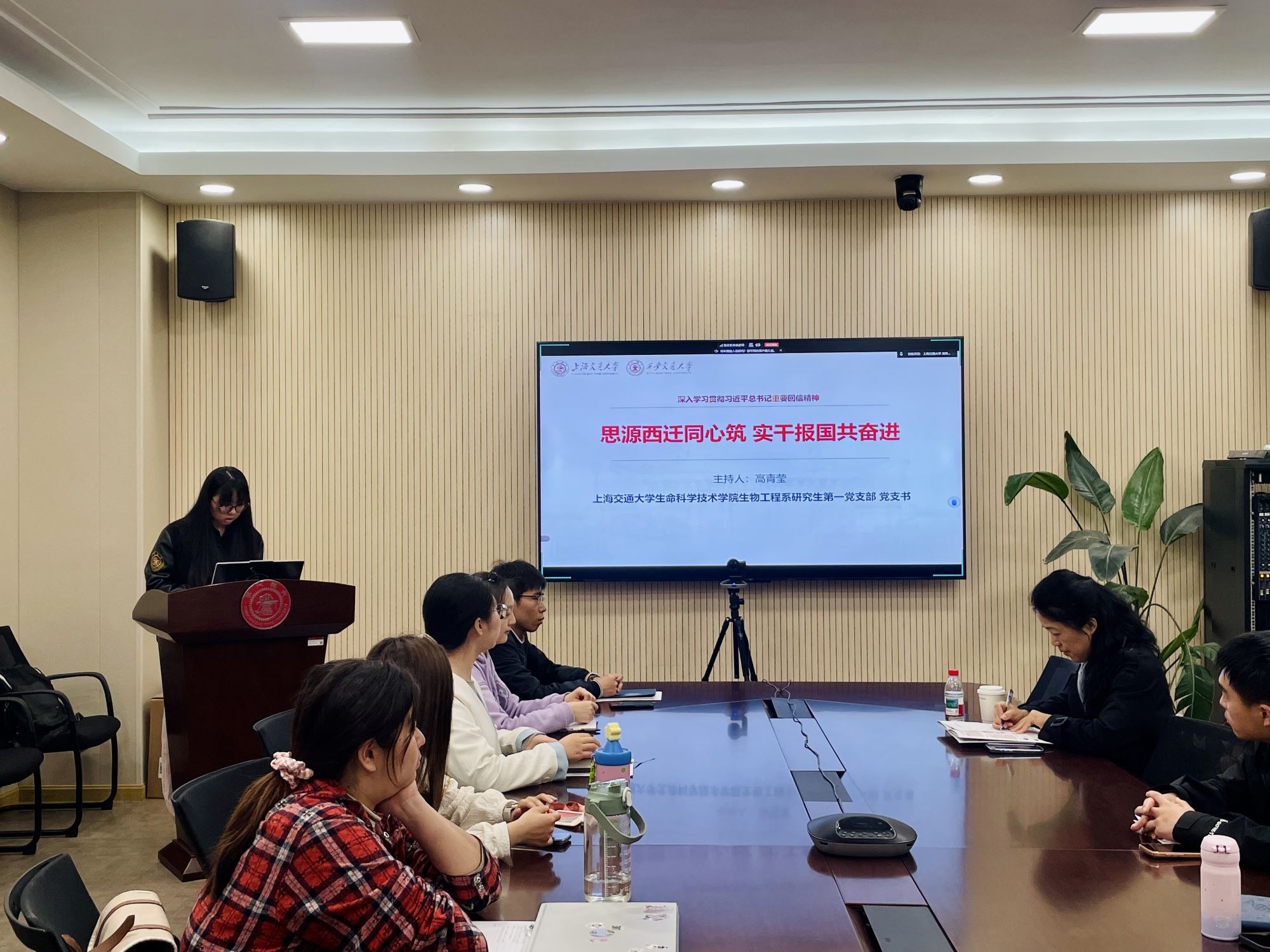为深入学习贯彻习近平总书记给四所交通大学全体师生重要回信精神,庆祝交通大学建校130周年,传承弘扬西迁精神,近日,Av解说 生物工程系研究生第一党支部联合Av解说 马克思主义学院马克思主义理论博士生第一党支部、科学技术史研究生党支部、西安交通大学公共政策与管理学院硕2025级党支部、化学工程与技术学院硕士生党支部举办“思源西迁同心筑,实干报国共奋进”主题党日活动。Av解说 副院长蒋群、西安交通大学公共政策与管理学院副院长王立剑两校各支部党员同志共同参加,活动由Av解说 生物工程系研究生第一党支部书记高青莹主持。